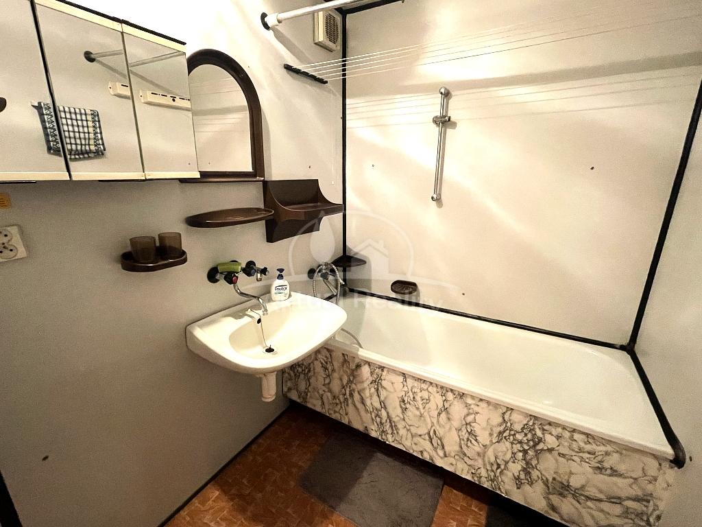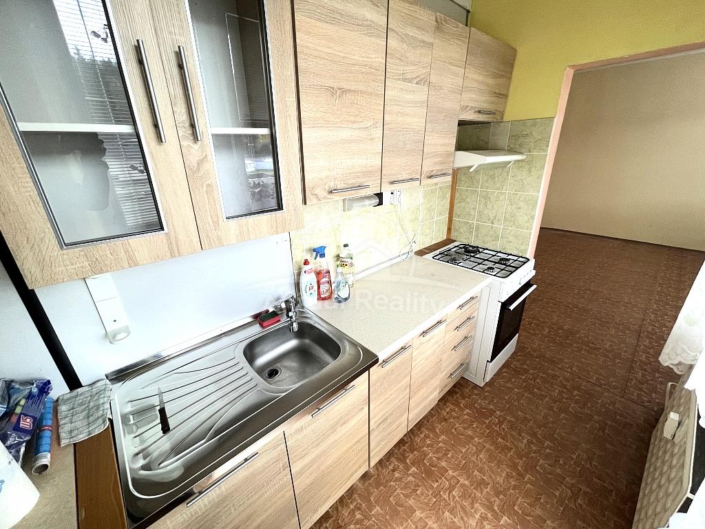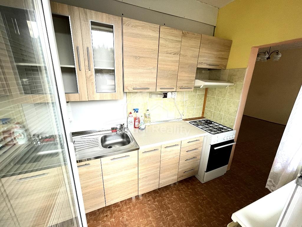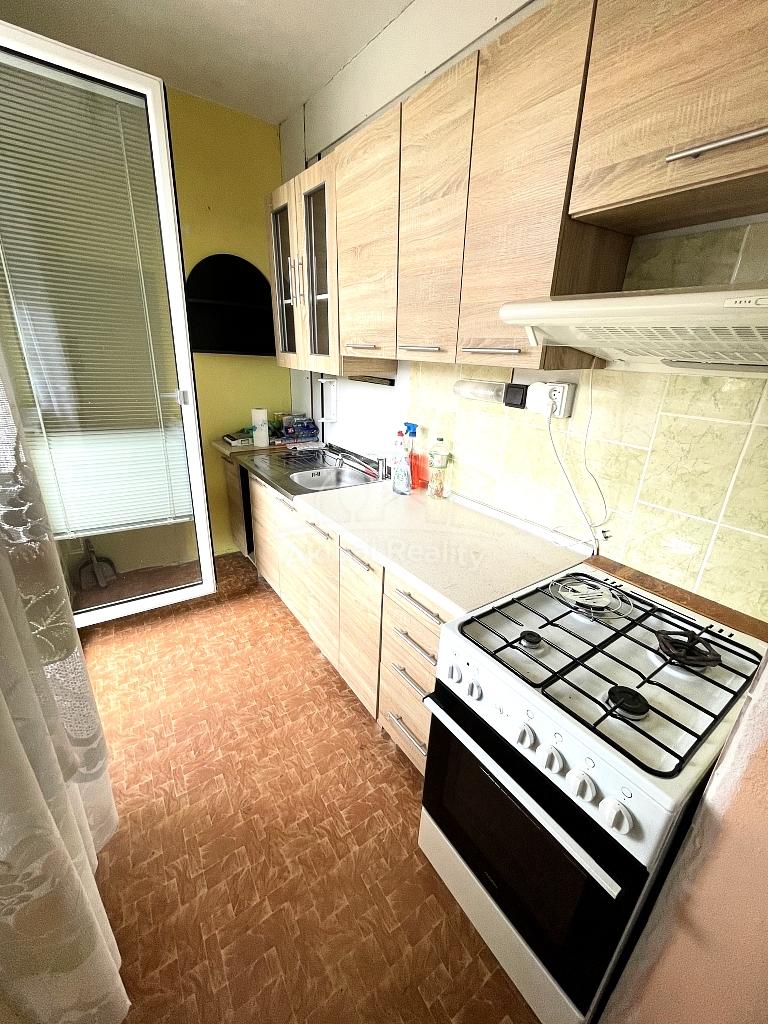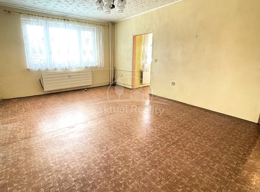 Byt je po čiastočnej rekonštrukcii. Byt pozostáva z vstupnej chodby, kúpeľne, samostatného WC, kuchyne, lodžie a veľkej izby. Dispozícia a rozloha bytu umožňujú prerobiť byt na dvojizbový. Bytové jadro je pôvodné, vaňa. Kúpeľňa je priestranná s priestorom na veľkú pračku. Nová kuchynská linka + plynový šporák s elektrickou rúrou. Okná v byte sú plastové. Byt je vystierkovaný. K bytu patrí kumbál na poschodí a pivnica na prízemí. Okolie poskytuje plnú občiansku vybavenosť.